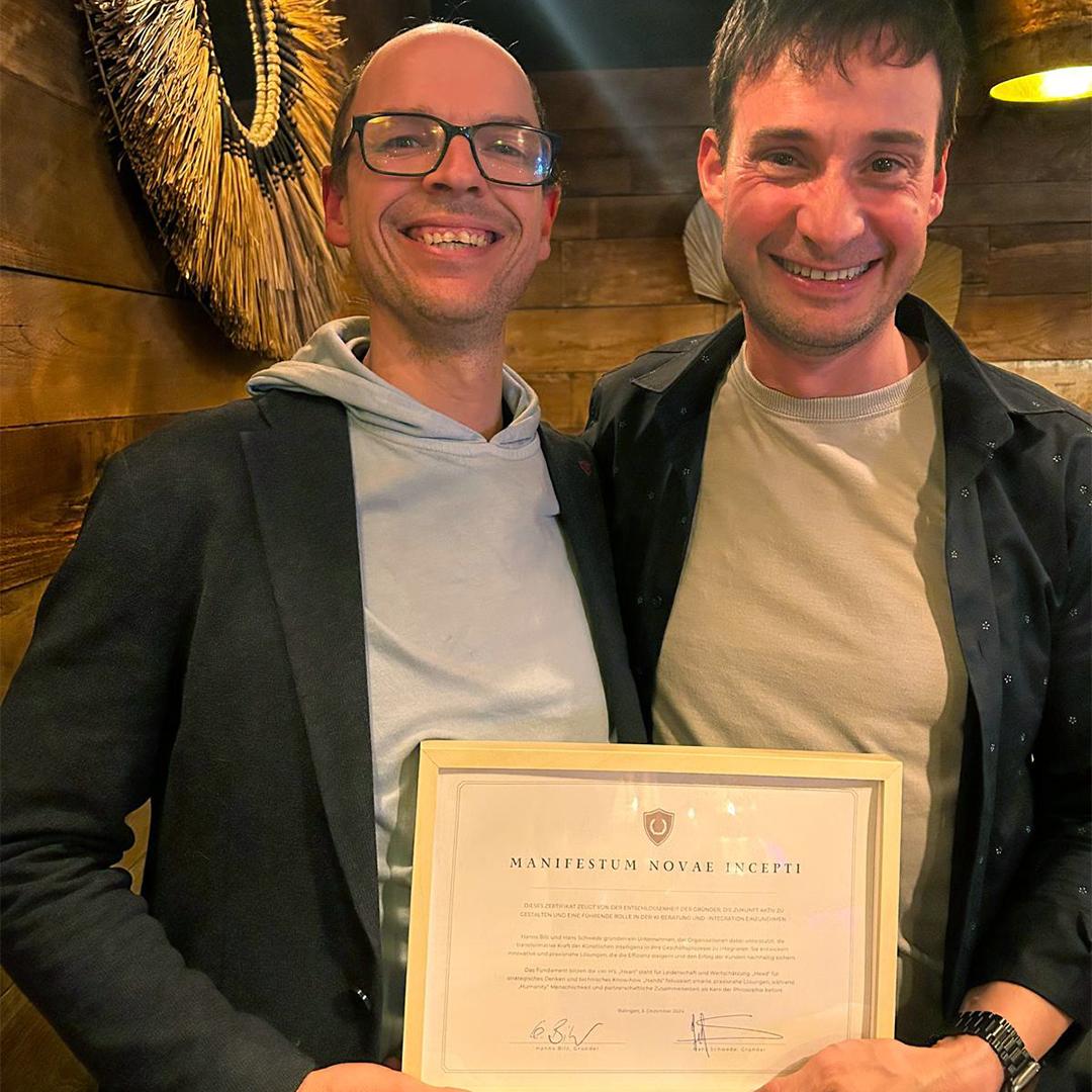 Zwei Strategen, die aus Erfahrung wissen, dass digitale Transformation mit KI nur dann funktioniert, wenn sie Menschen stärkt, statt sie zu ersetzen.